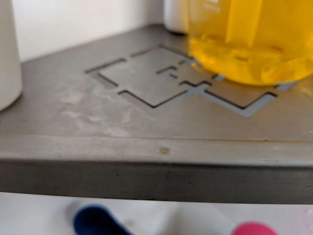 We’re not sure if it’s because of Singapore’s humid weather, the soap, or the water from showering. But it definitely sucks to have the shelves continuously rust. We managed to use white vinegar to wipe away some of the rust, but the rest has been very persistent.